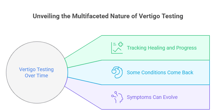 • Repeat Testing Tracks Change and Recovery: Vertigo symptoms can evolve, improve, or return, so repeat testing helps doctors monitor healing, catch new issues, and adjust treatment.